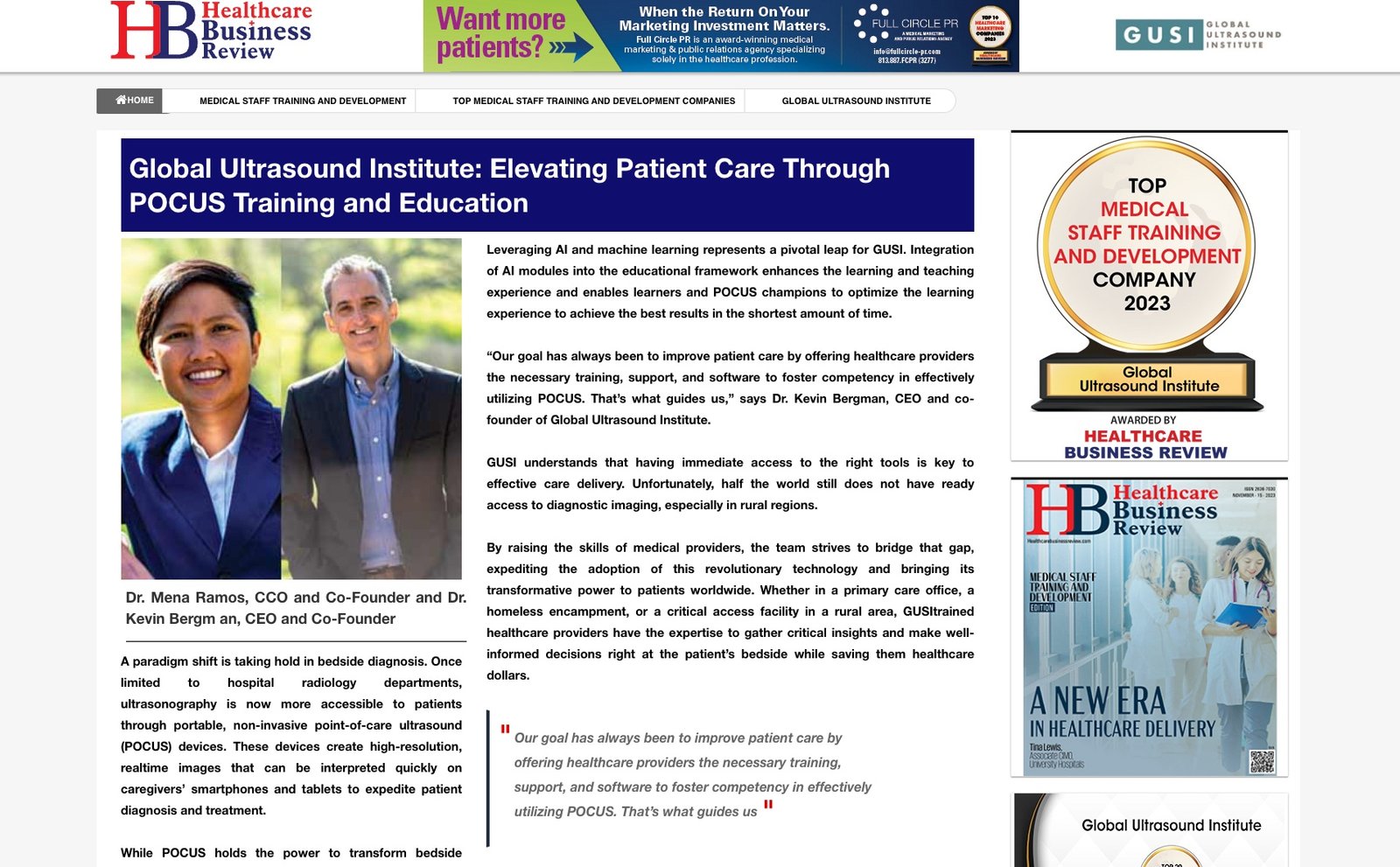 Global Ultrasound Institute: Honored as the Top 20 Medical Staff Training & Development Company