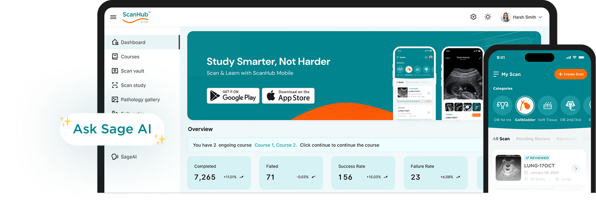 Transform your institution’s ultrasound training with the all-in-one ScanHub platform that connects learning, practice, and data management. Get started today and see why thousands of healthcare providers choose our complete POCUS ecosystem.
