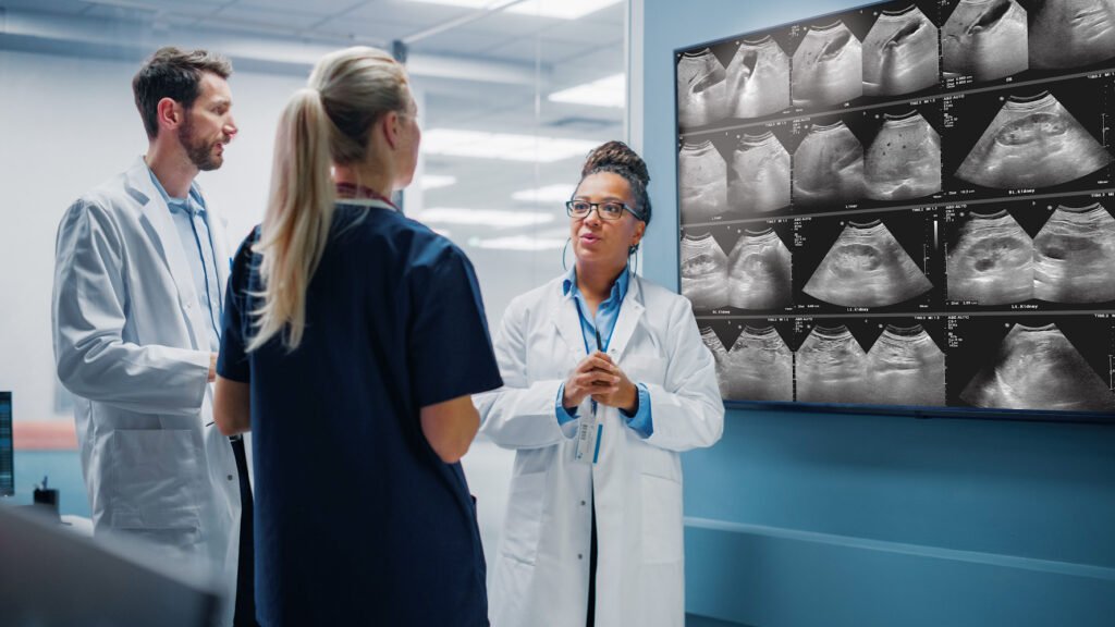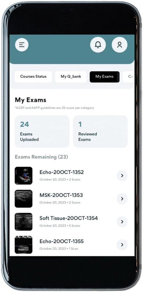 The scanOne™ app is a safe and secure way to upload and manage POCUS scans from any ultrasound device — enabling efficient training, QA, and feedback.